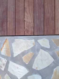 - Design with materials contrasting lightness and strength – a light and airy wooden deck that floats over the oak woodland landscape with a contrasting solid stone wall to anchor the spa environment
