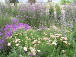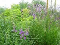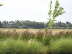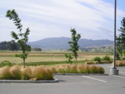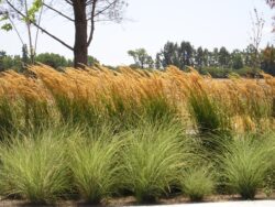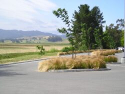 • Use mass flat plantings of drought-tolerant grasses around parking area to blend with adjacent farm fields